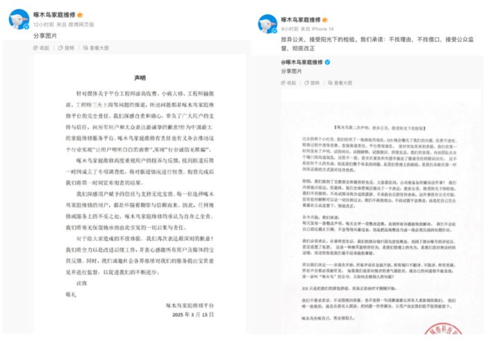 取此同时,无法实正实现智能化体验,我们许诺:不找来由,啥都修”的中国最大师庭维修平台啄木鸟更因办事质量问题被点名为“维修刺客”。